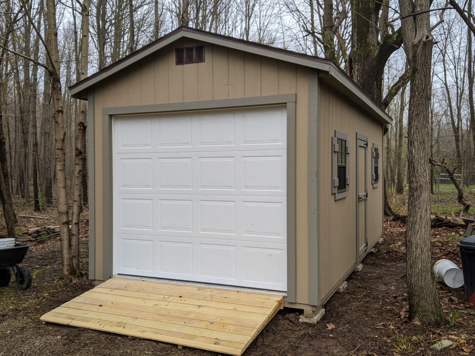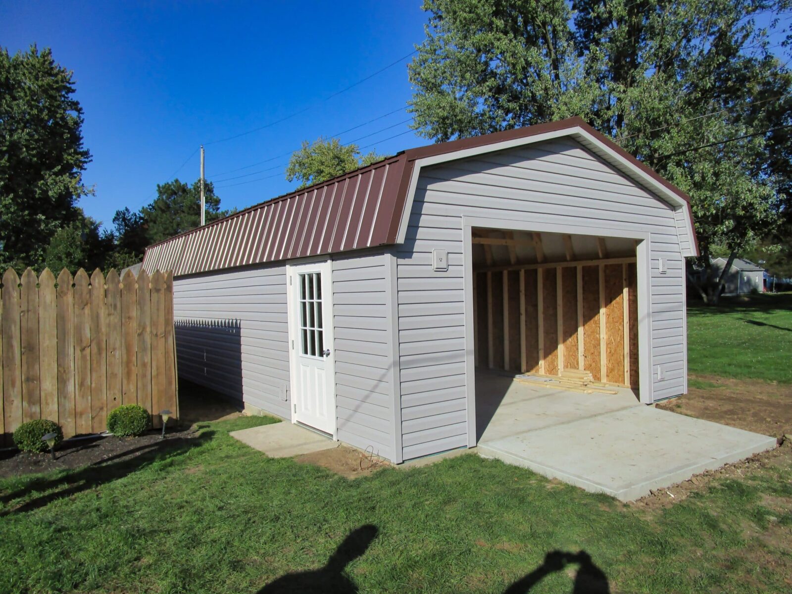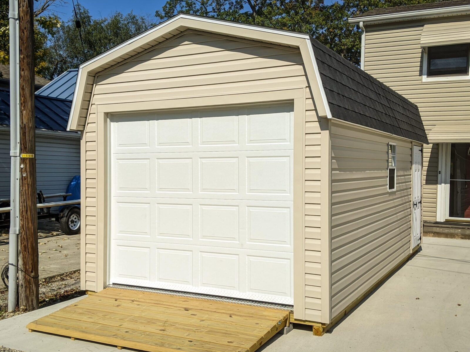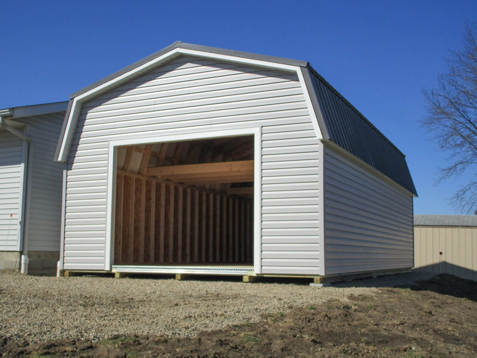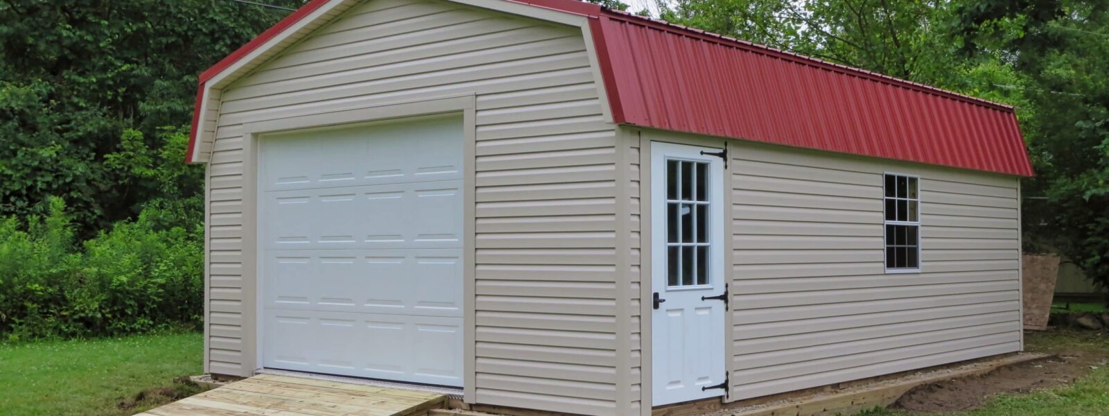Getting a portable garage from Beachy Barns is the quickest way to unlock a huge amount of space in the Central Ohio region. Traditional stick-built garages are time-consuming and costly to build. We hand-build these garages at our shop in Plain City, Ohio. Because we build them in the shop, we are able to build more quickly and more efficiently, with much less waste in time and materials than traditional building methods. In cases where we have to build on-site, we pre-build as much as we can in the shop before we come out. In most cases, our on-site builds are completed in less than a day because most of the work is done in our shop long before we enter your property.
