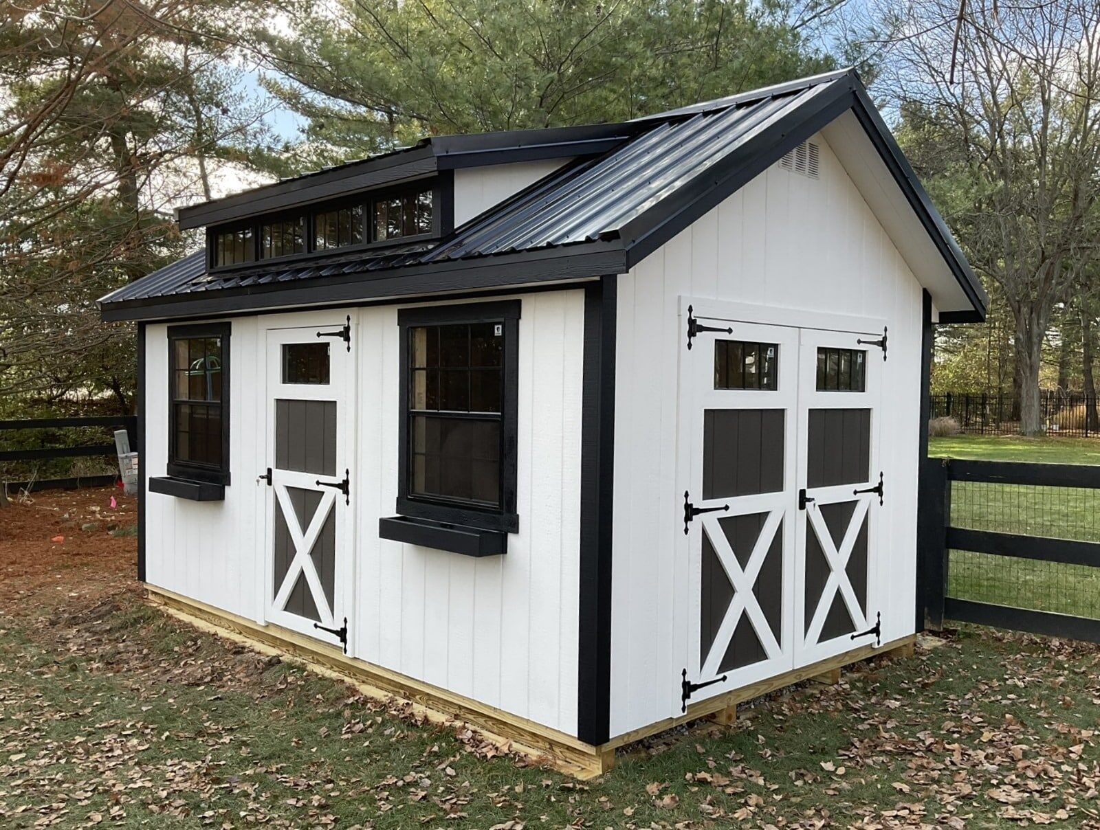 Our Mini Barn sheds for sale in Grove City OH are a practical storage solution for your property. Whether storing outdoor tools, business supplies, or seasonal decorations, this shed is perfect! These sheds will seamlessly fit your backyard space and provide secure and durable storage. Our Mini Barn Shed is our most economical, yet we never compromise on quality!