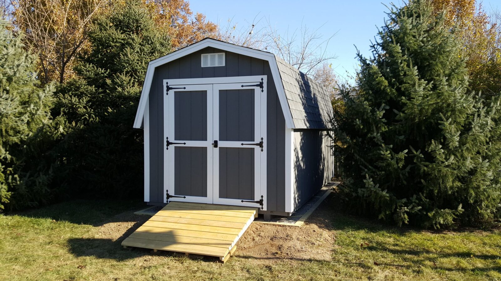 Our Highwall Barns are ideal for maximizing your storage space! Choose between the basic Highwall Barn or our Premier Highwall Barn for even more headroom beneath a gambrel-style roof. You can choose the placement of your windows and doors, as well as multiple other custom options!