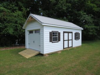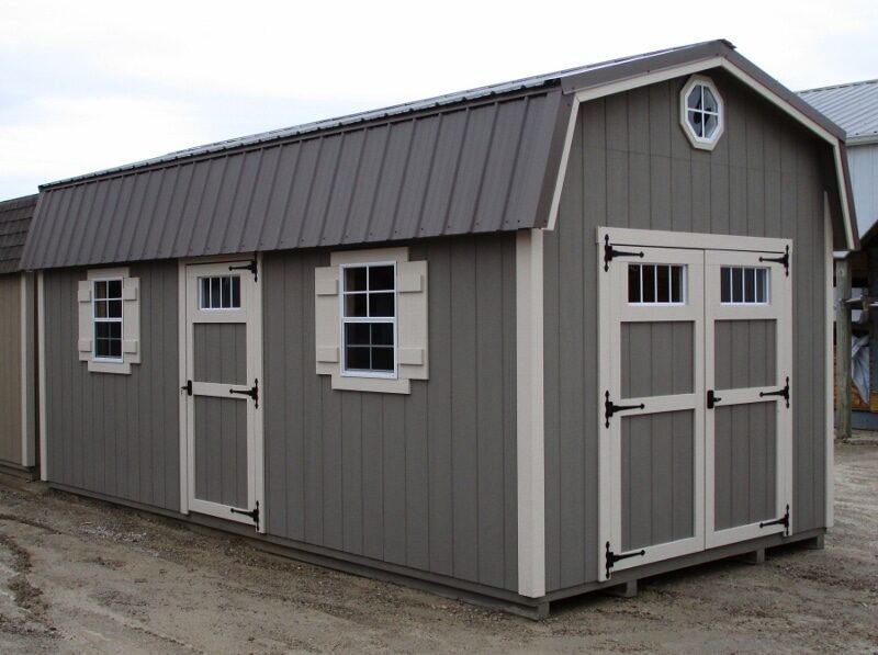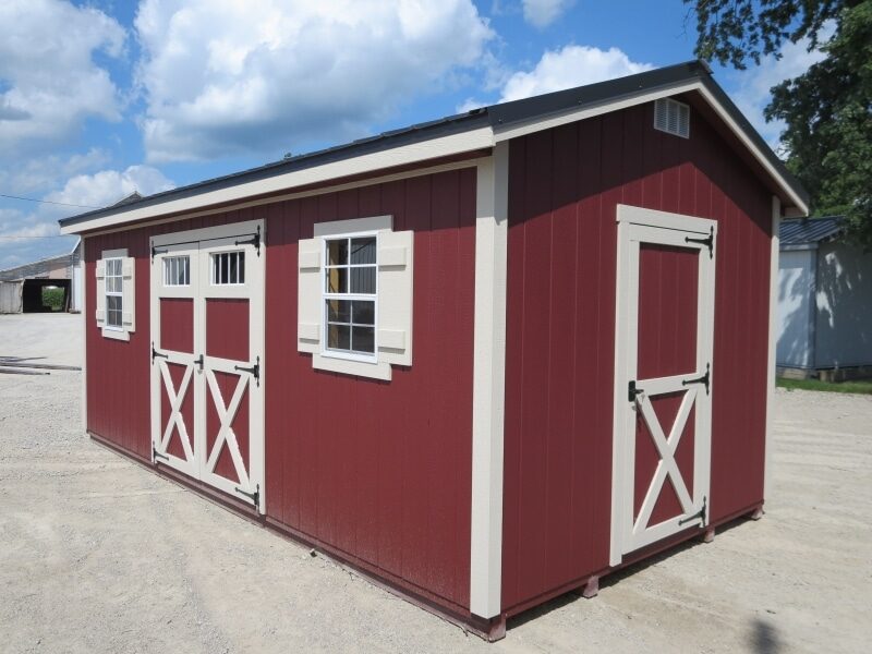 If you’re looking for charming sheds for sale in Grove City OH our Quaker Shed is certainly worth considering. These sheds range in size from 8×14 to 16×28, making them perfect to customize as a man-cave, she-shed, or hobby shed. You can choose the number of doors and windows as well as their placement. What sets Quaker Sheds apart is the overhanging roof on the front, which not only adds to the visual appeal, but also provides added protection to the siding of the building.