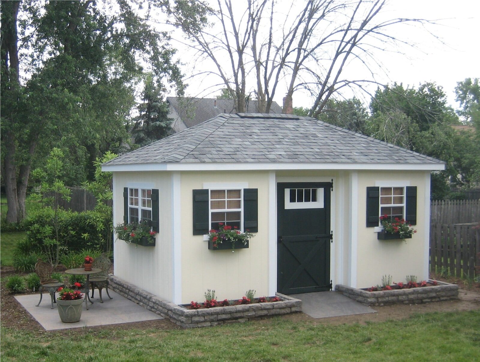 Our charming Cottage Sheds make a striking addition to your backyard. While these sheds make excellent storage solutions, their beautiful and elegant finish makes them the perfect choice for a hobby shed or guest quarters. Coming in sizes ranging from 10×12 to 12×16, this building can be fully customized with unique colors and add-ons to fit your wants.