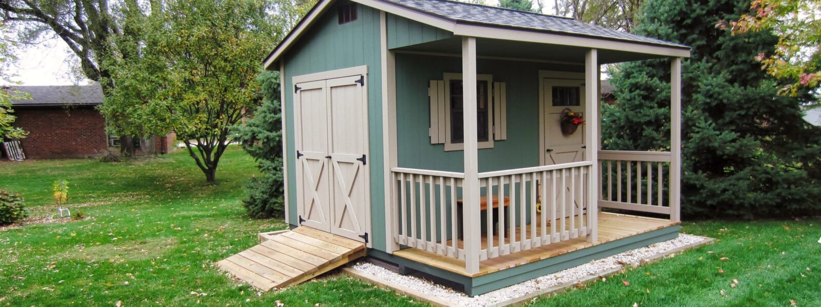 Are you looking for a shed with a unique design? The Quaker Shed offers a unique large overhang for rain protection while opening the doors. This design is excellent for specialized projects like home offices, she sheds, or backyard storage. These are available in inventory or for custom-built sheds in Vandalia, Ohio.