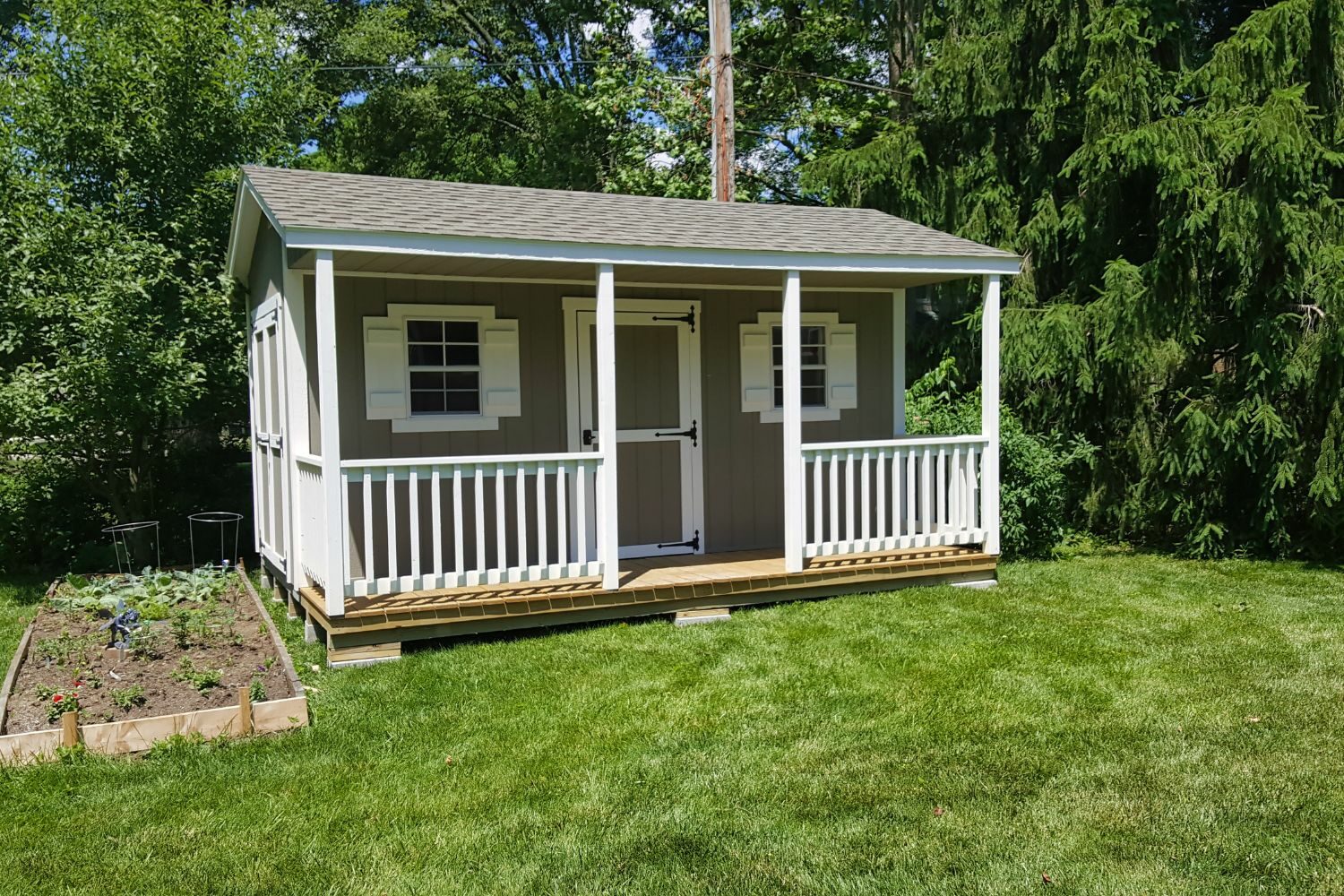 The front porch of the Cabin Shed is a quiet place to enjoy a morning cup of coffee or relax in the glow of an evening sunset. Why have just plain storage space when you can craft the beautiful focal point of your backyard? Whether you are designing a studio shed, a bunkhouse for guests, or space to store your valuables, the Cabin Shed offers a great balance of form and function that may have the neighbors asking when they can stop by for the housewarming.